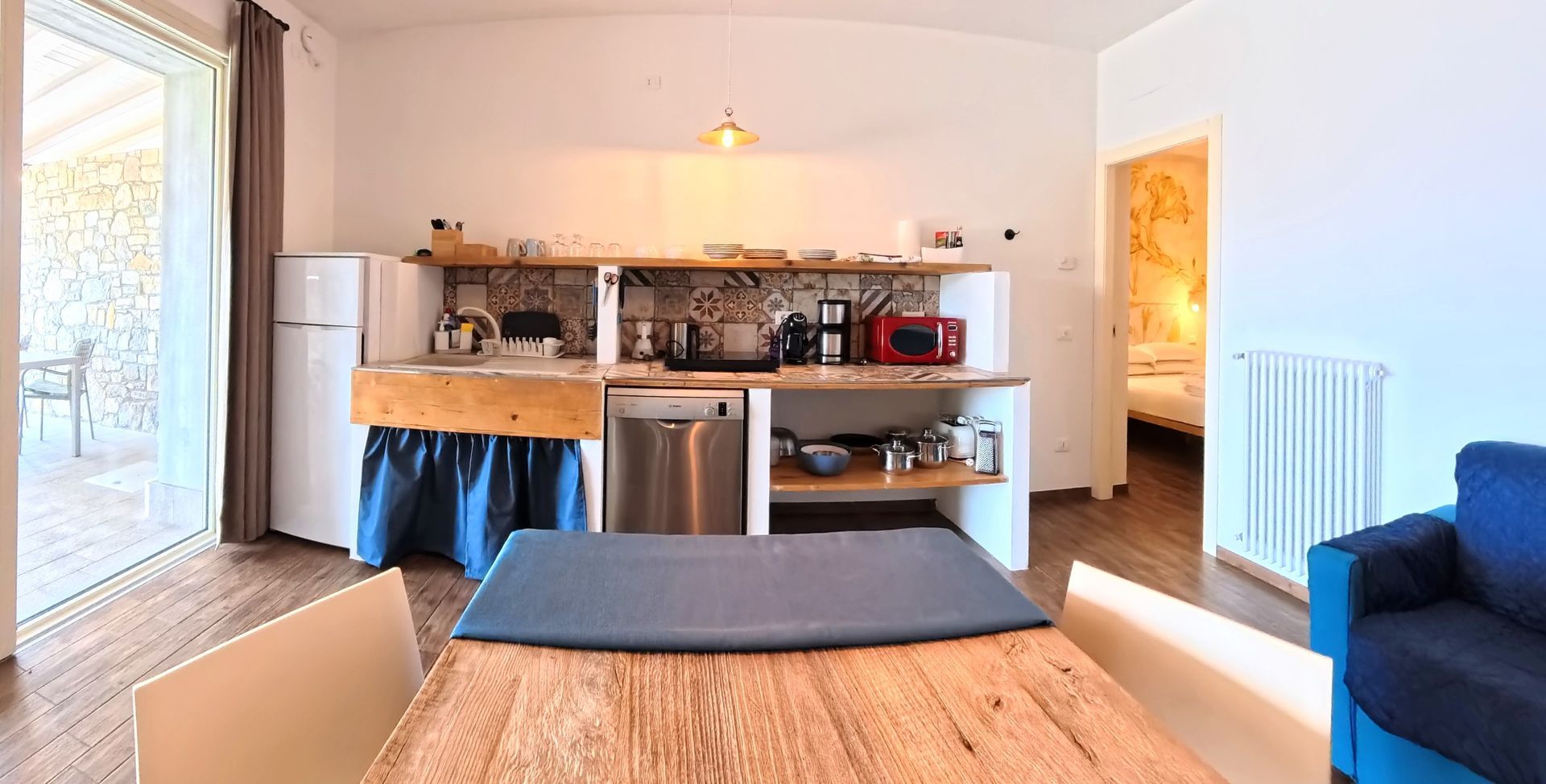 Die Apartments empfangen Sie mit Schlichtheit und Harmonie und lassen Raum für die Schönheit der Landschaft und das Gefühl, dem Alltag wirklich entkommen zu sein. Ein Ort, um Zeit wiederzuentdecken, durchzuatmen und sich ganz der Natur und der echten Ruhe hinzugeben.